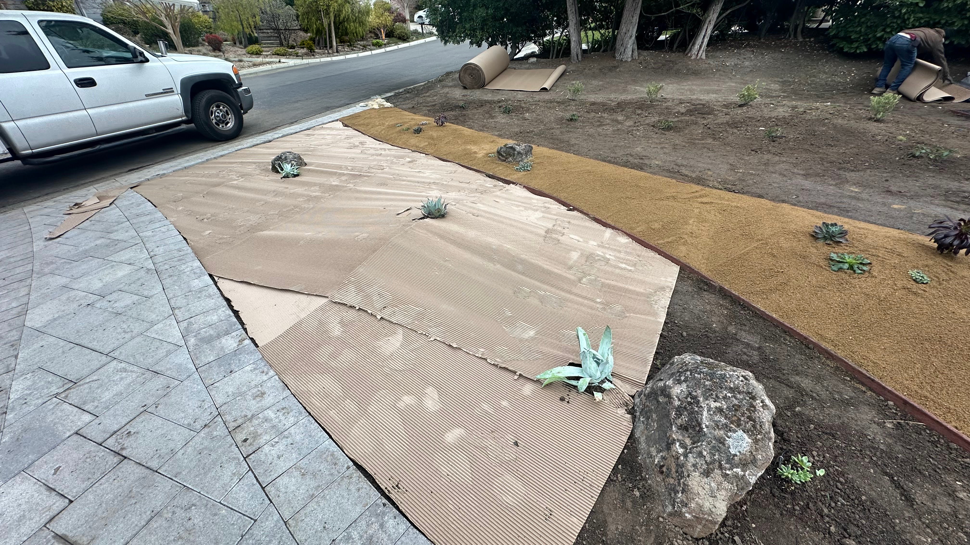 - Did the work. Removed the lawn, installed natives, cardboard mulch, drip irrigation, gravel, and hardscape.