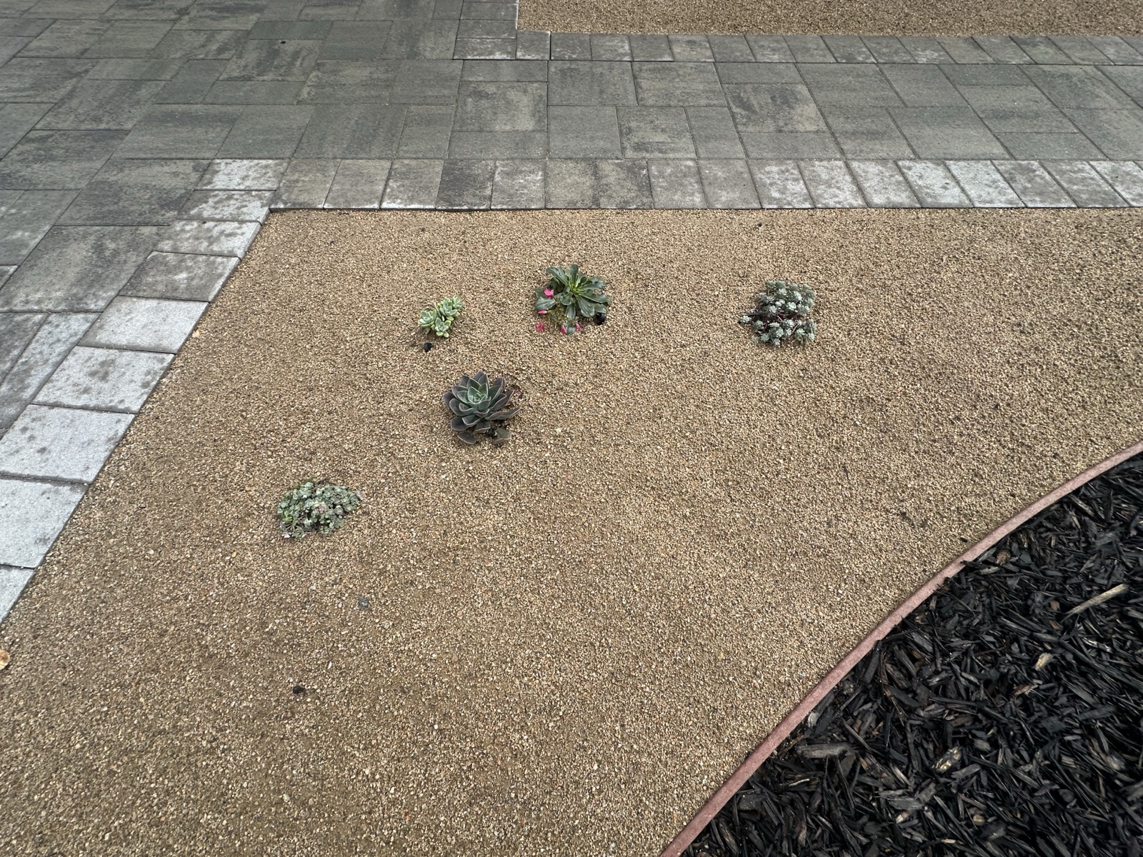 - Succulents for expansion. Low-maintenance succulents placed to fill in and spread over time, reducing bare-soil maintenance.