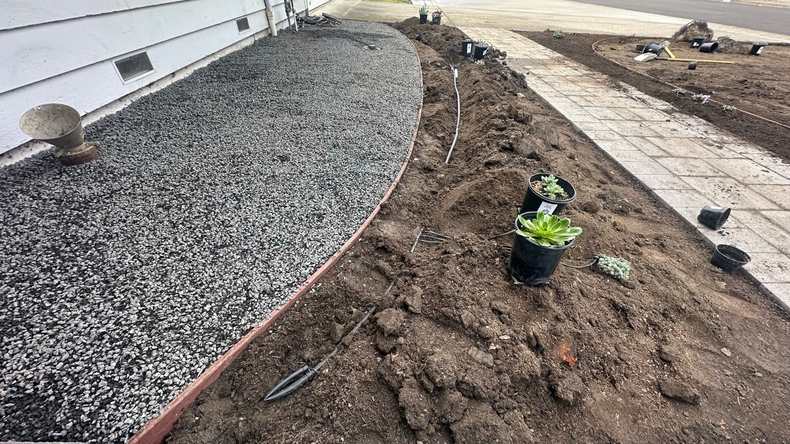 - Demolition (lawn removal, old irrigation tearout)