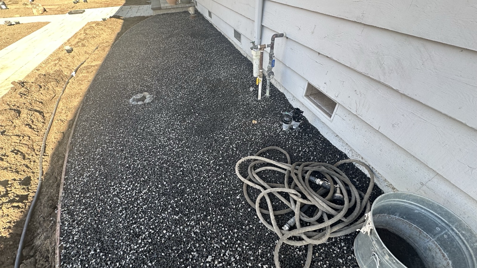 - Zone Zero compliance. A continuous gravel strip along the foundation, at least 5 feet out from the house wall. Non-combustible. No plants, no mulch within this band.